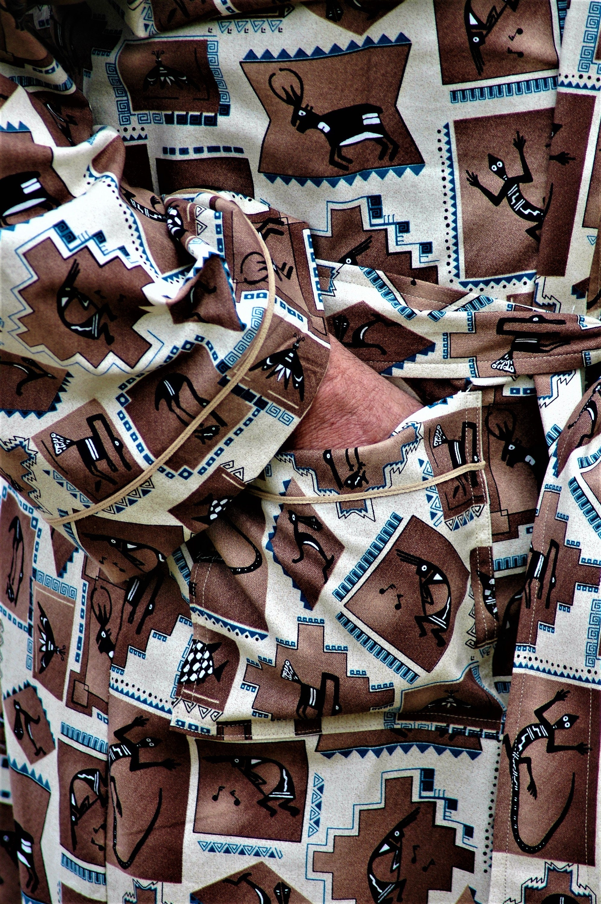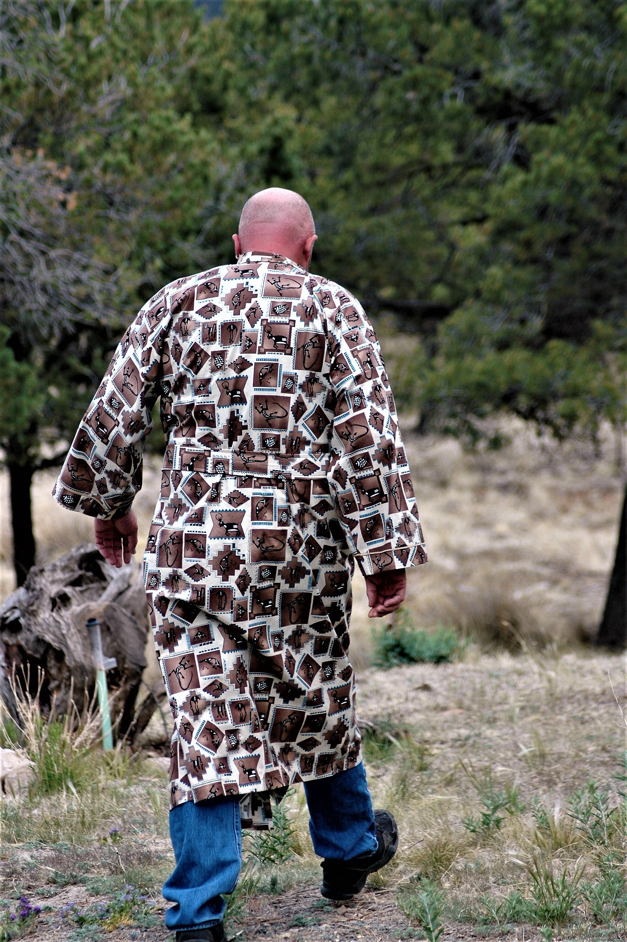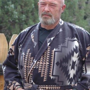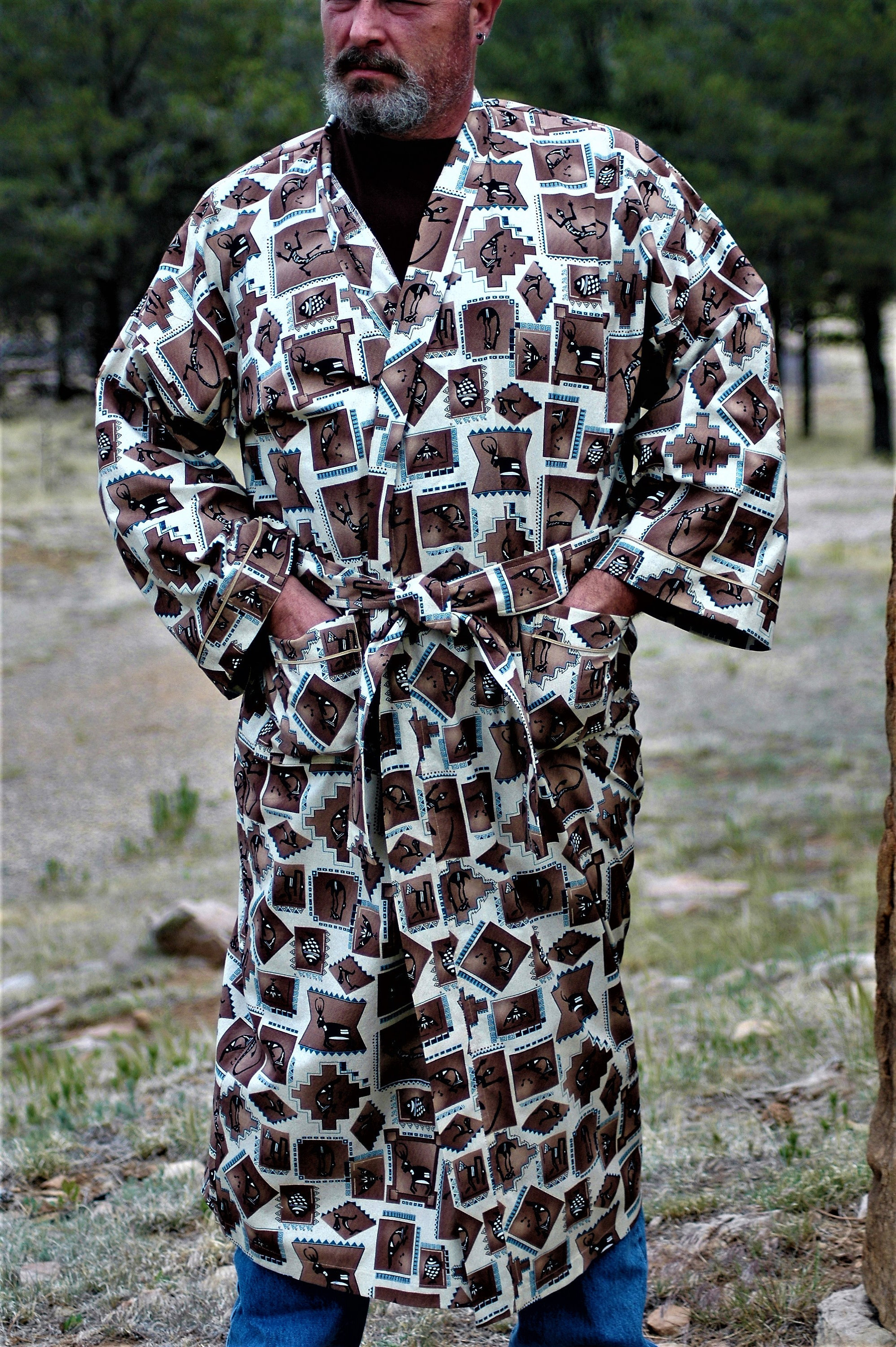 Unisex cotton robe in a southwest print. Pre-washed before cutting for shrinkage and softness