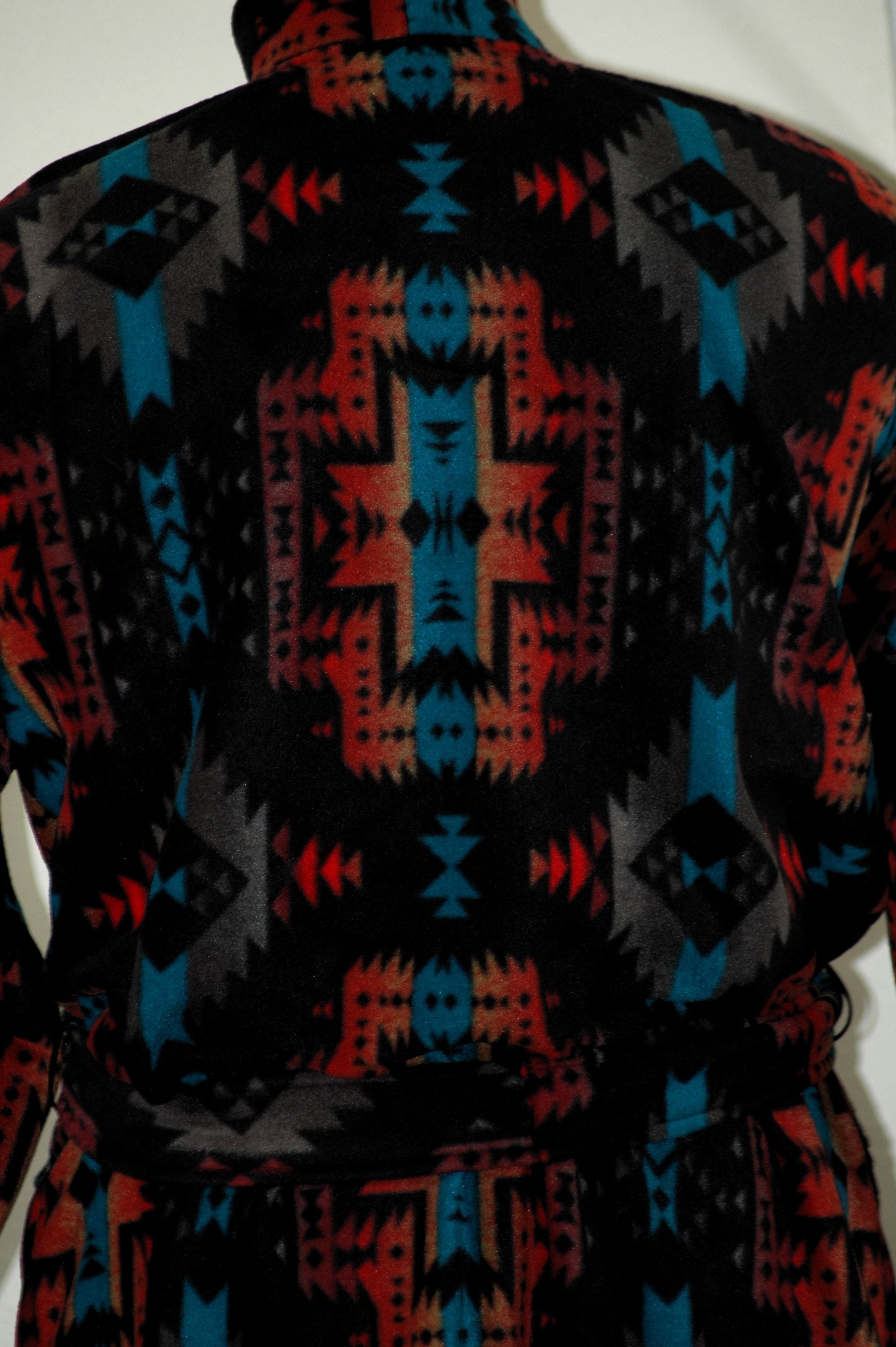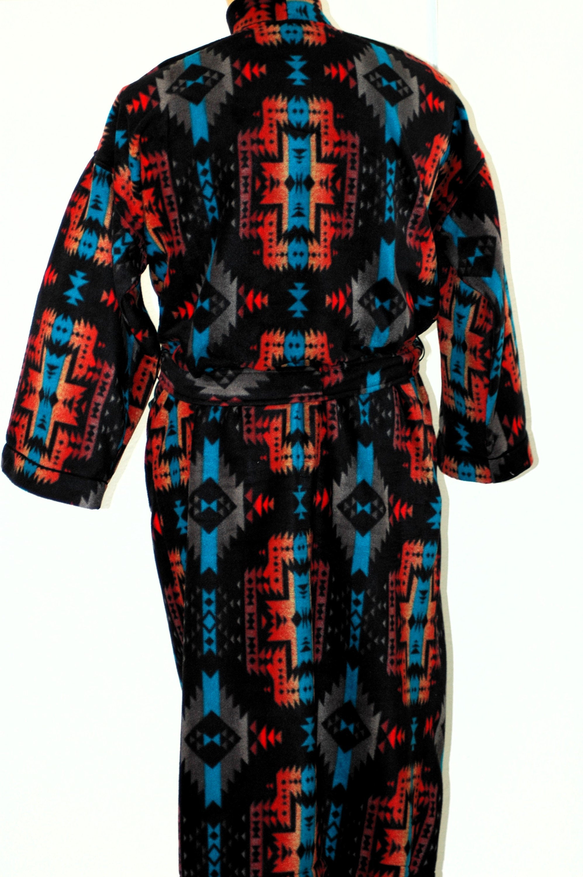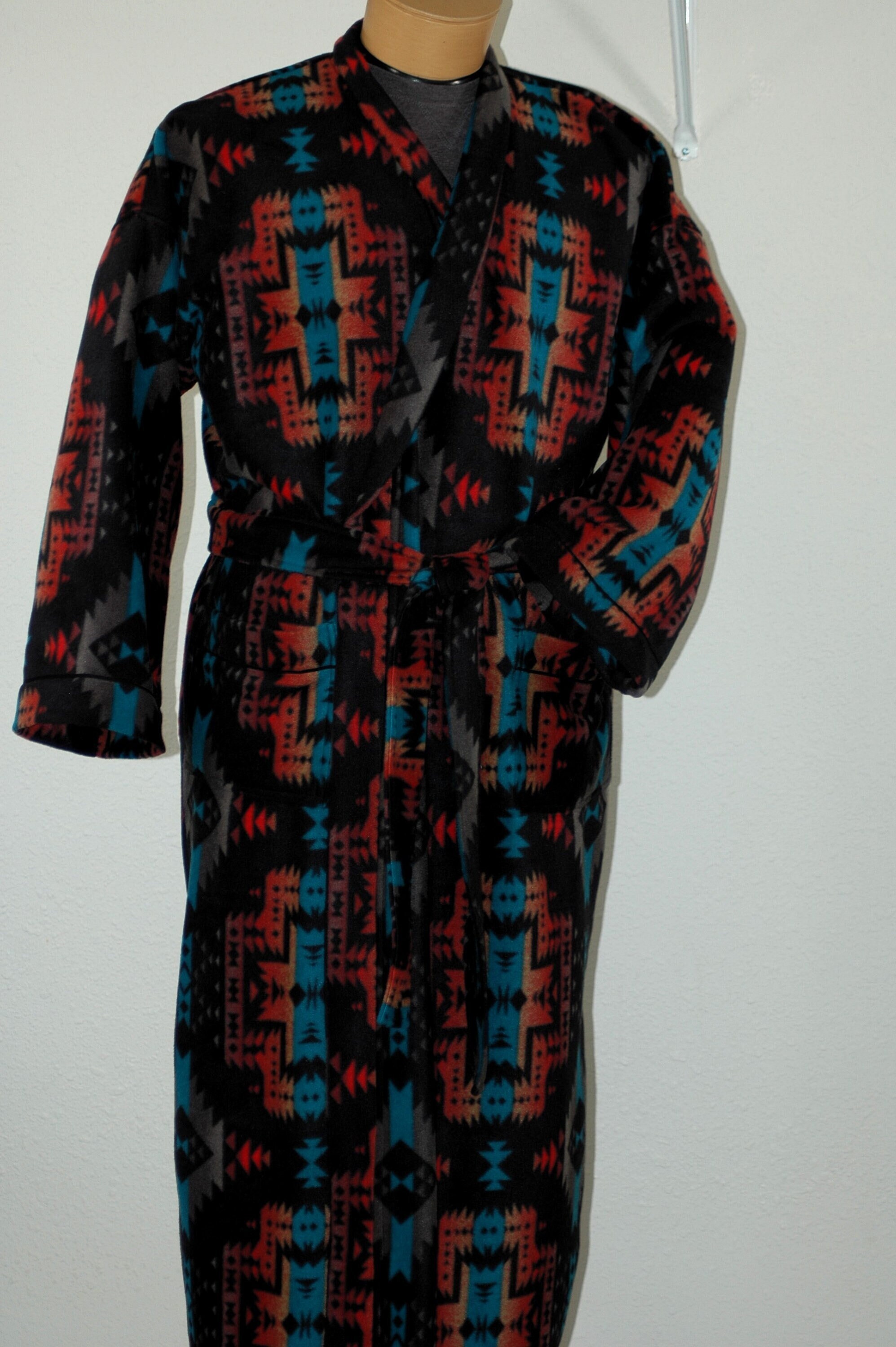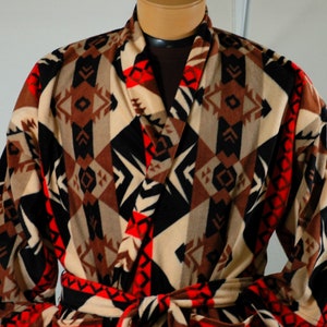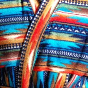 Southwest blanket style winter plush fleece robe. Anti-pill so it always looks great feels luxurious.
