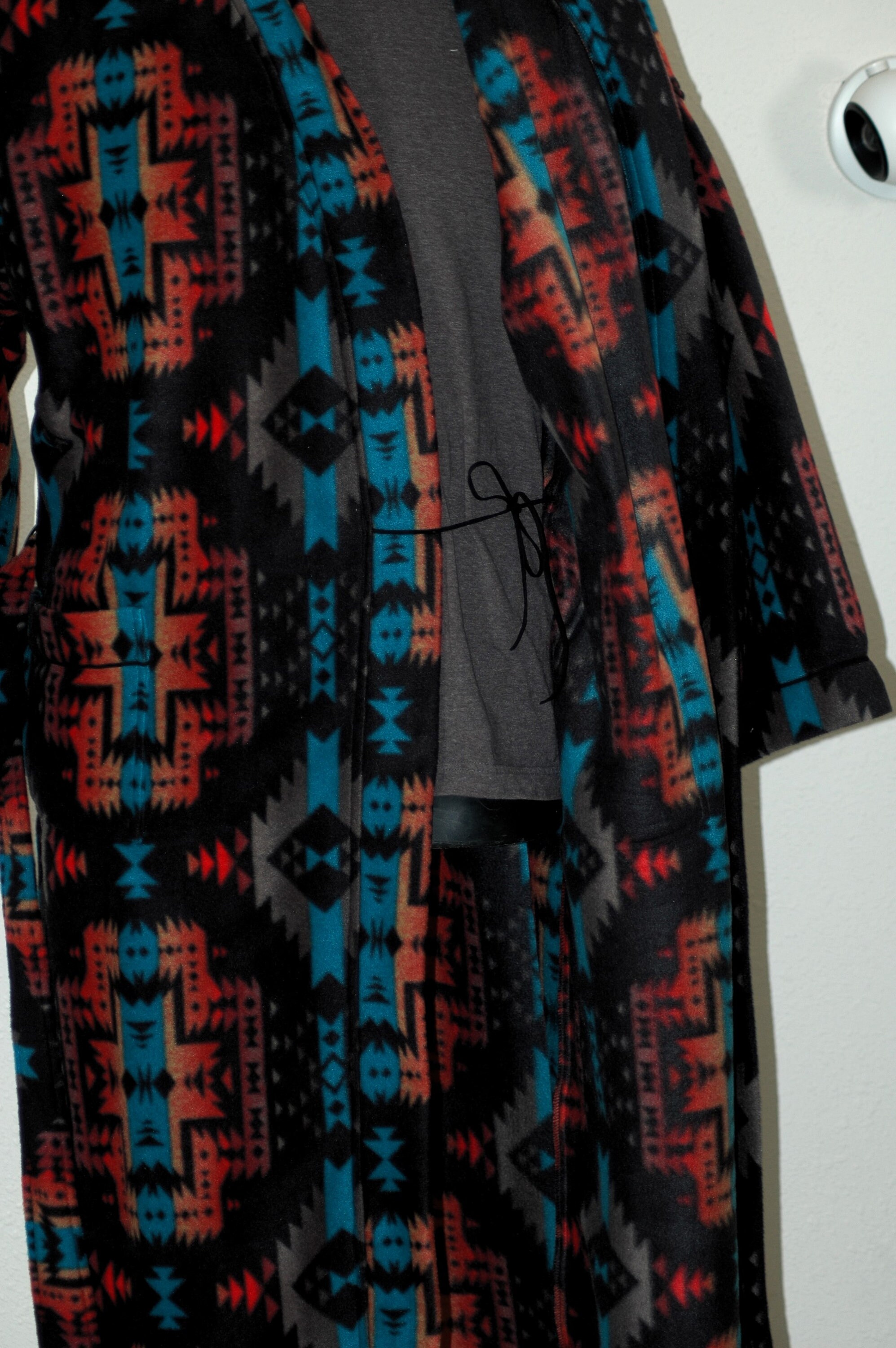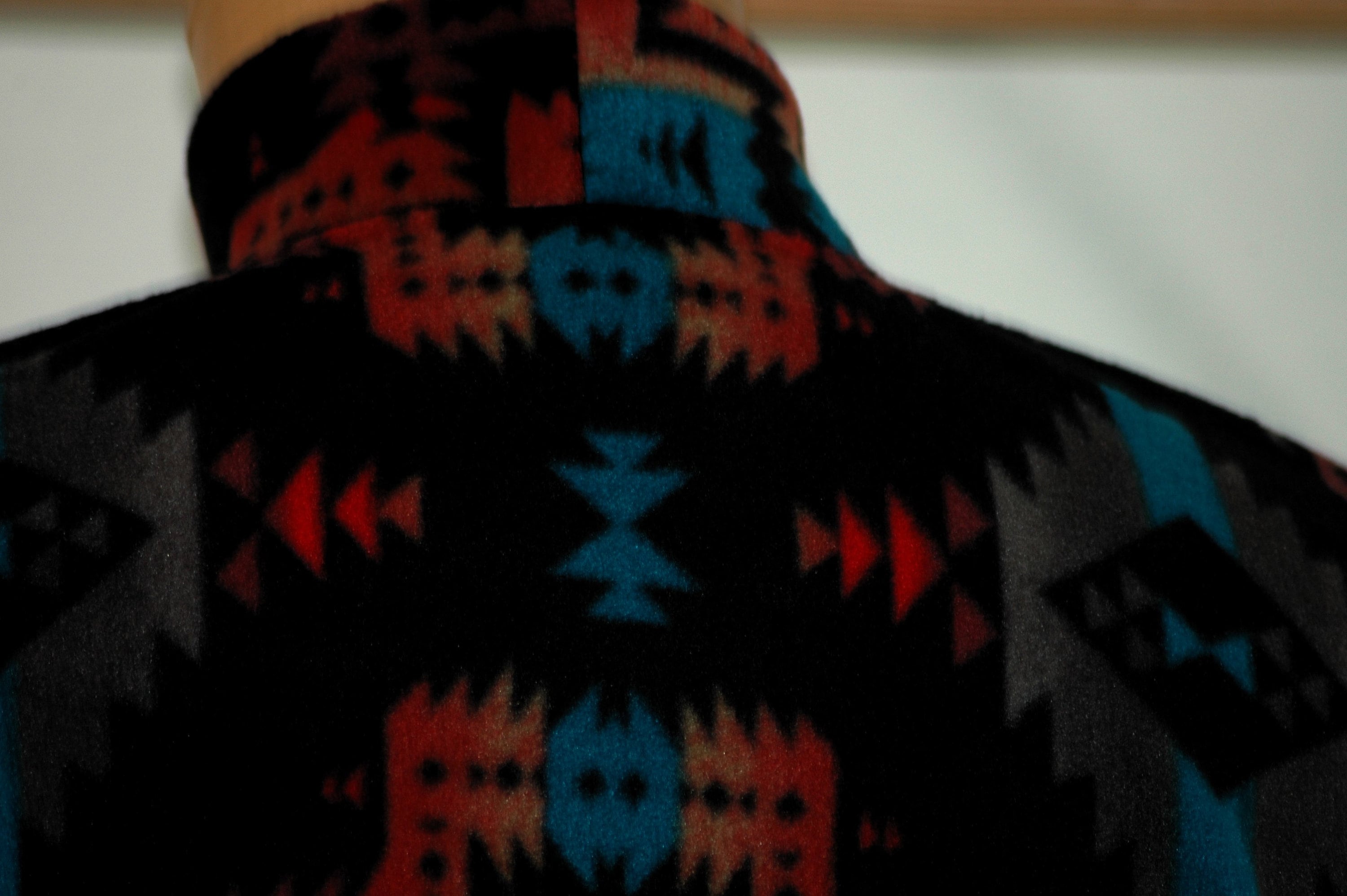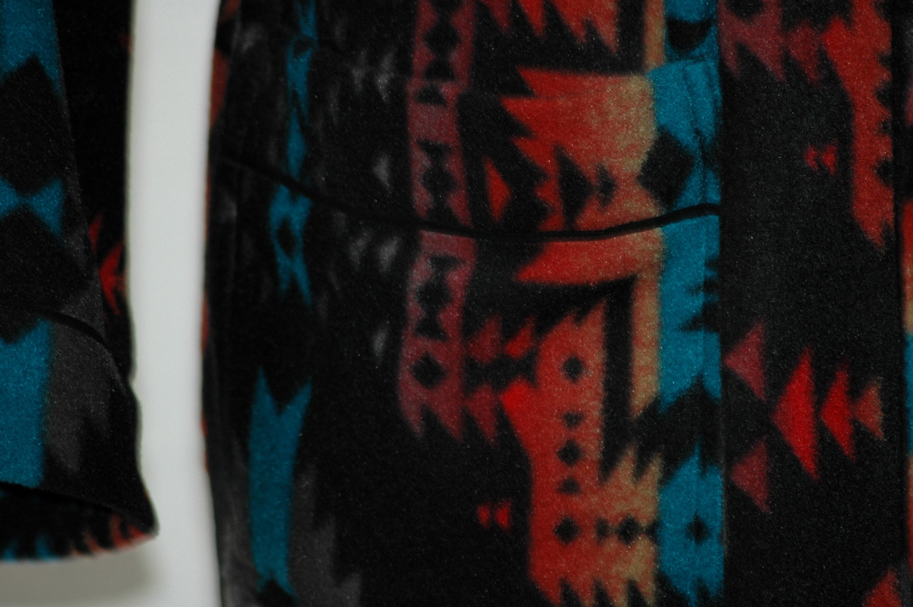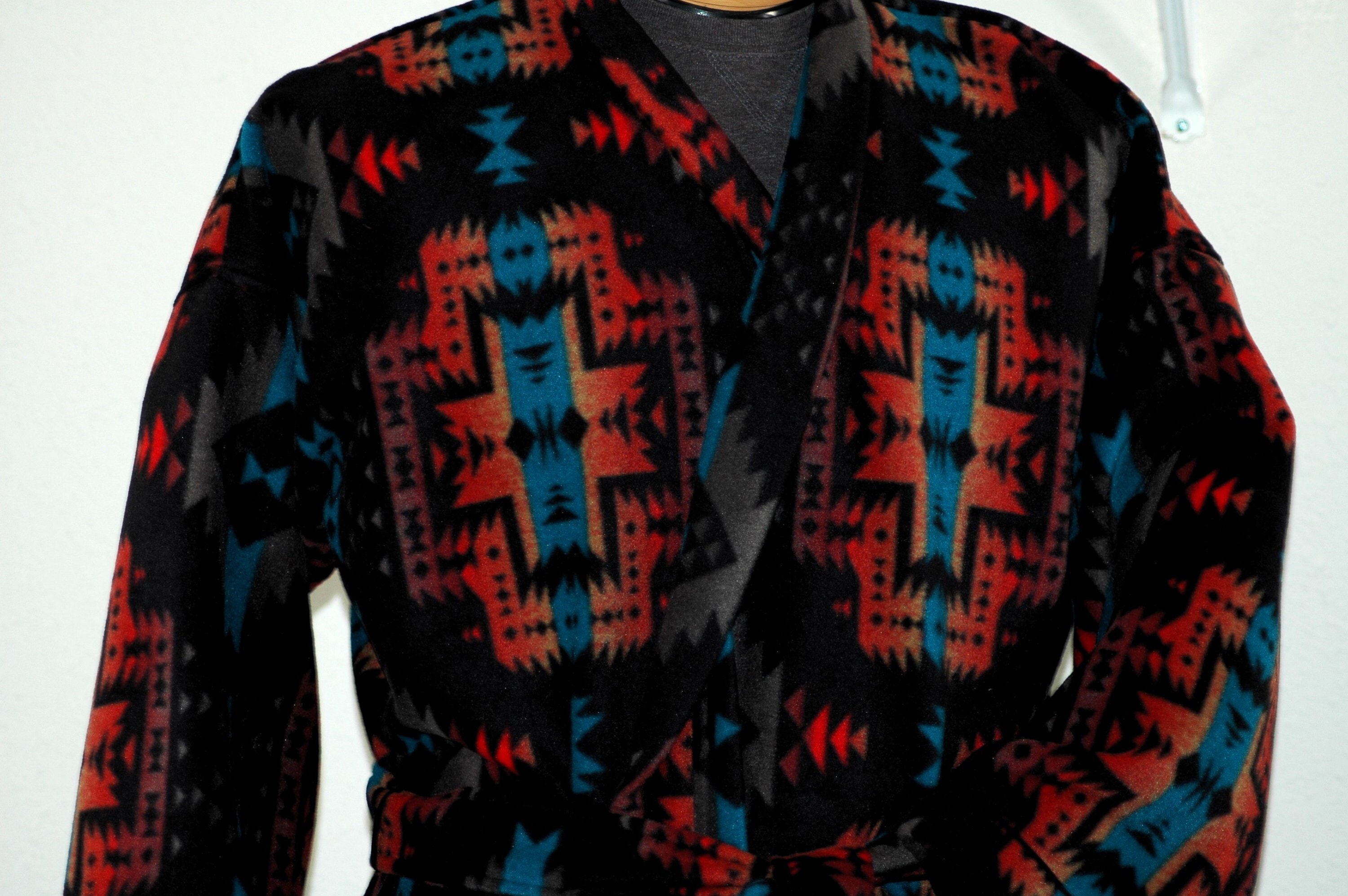 Southwest blanket style winter plush fleece robe. Anti-pill so it always looks great feels luxurious.