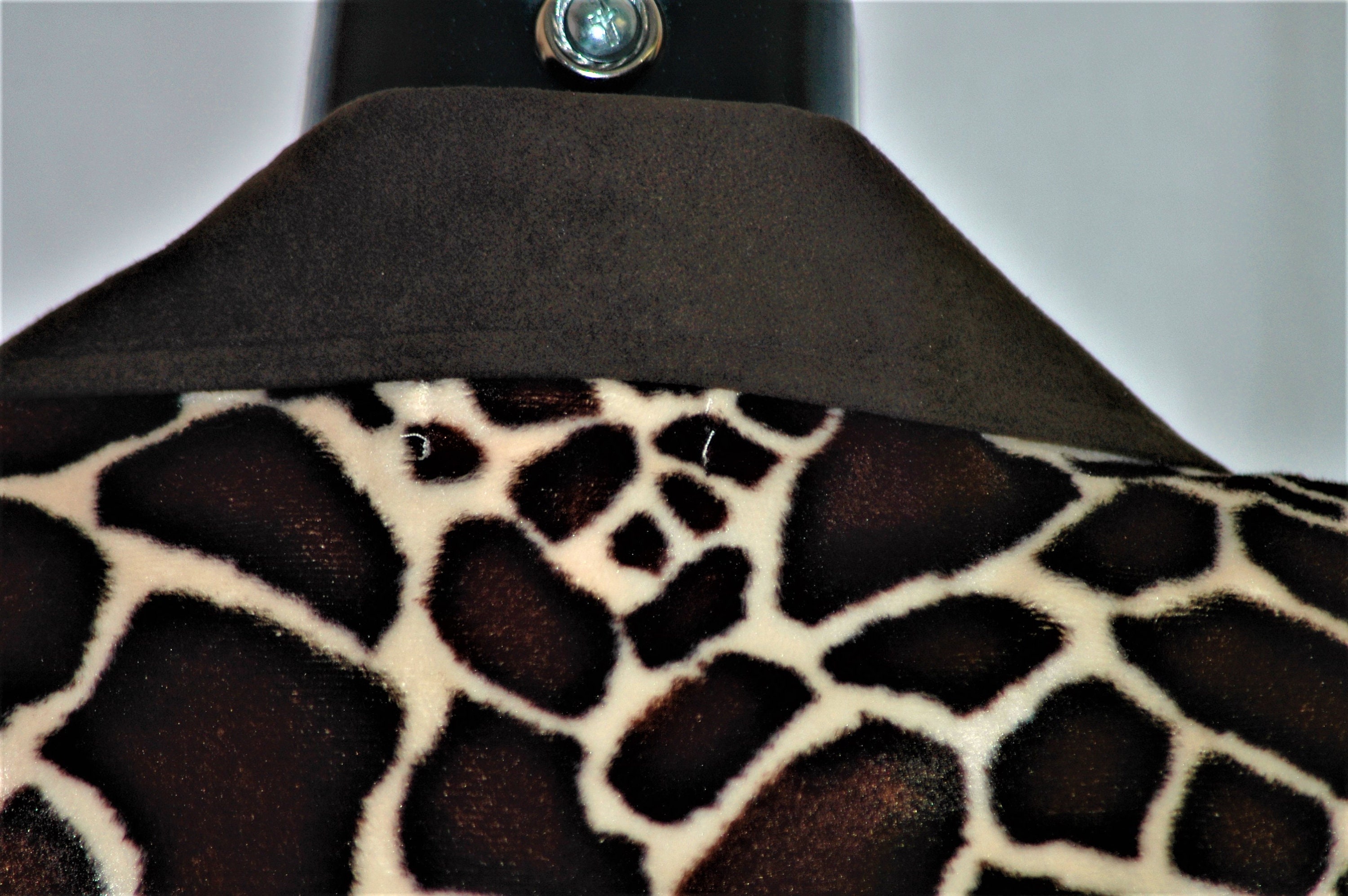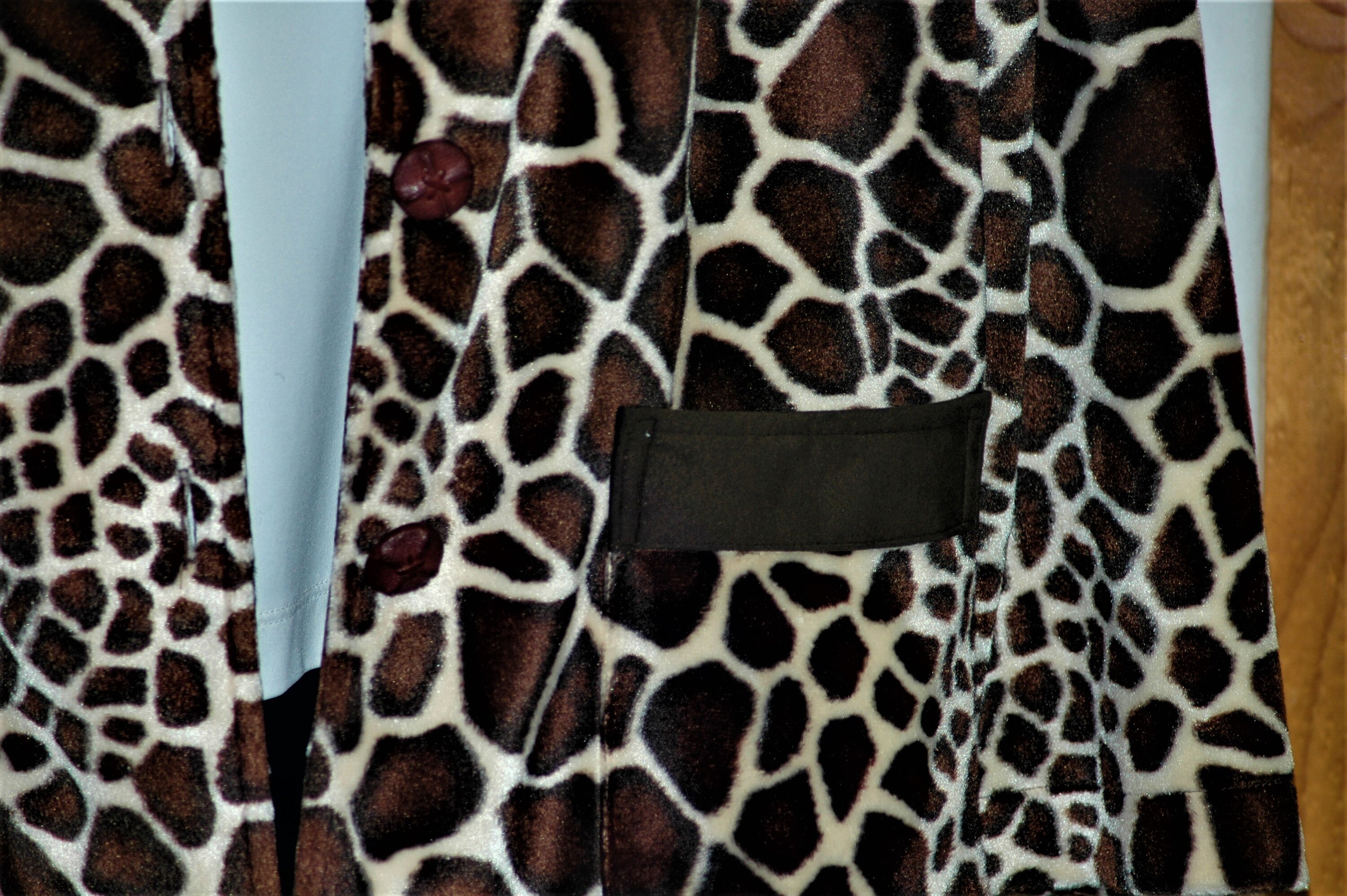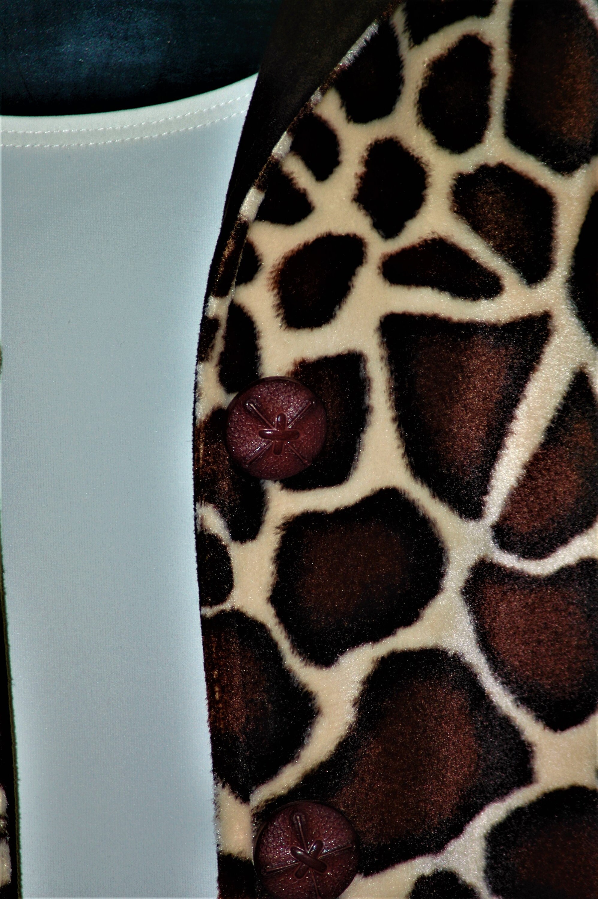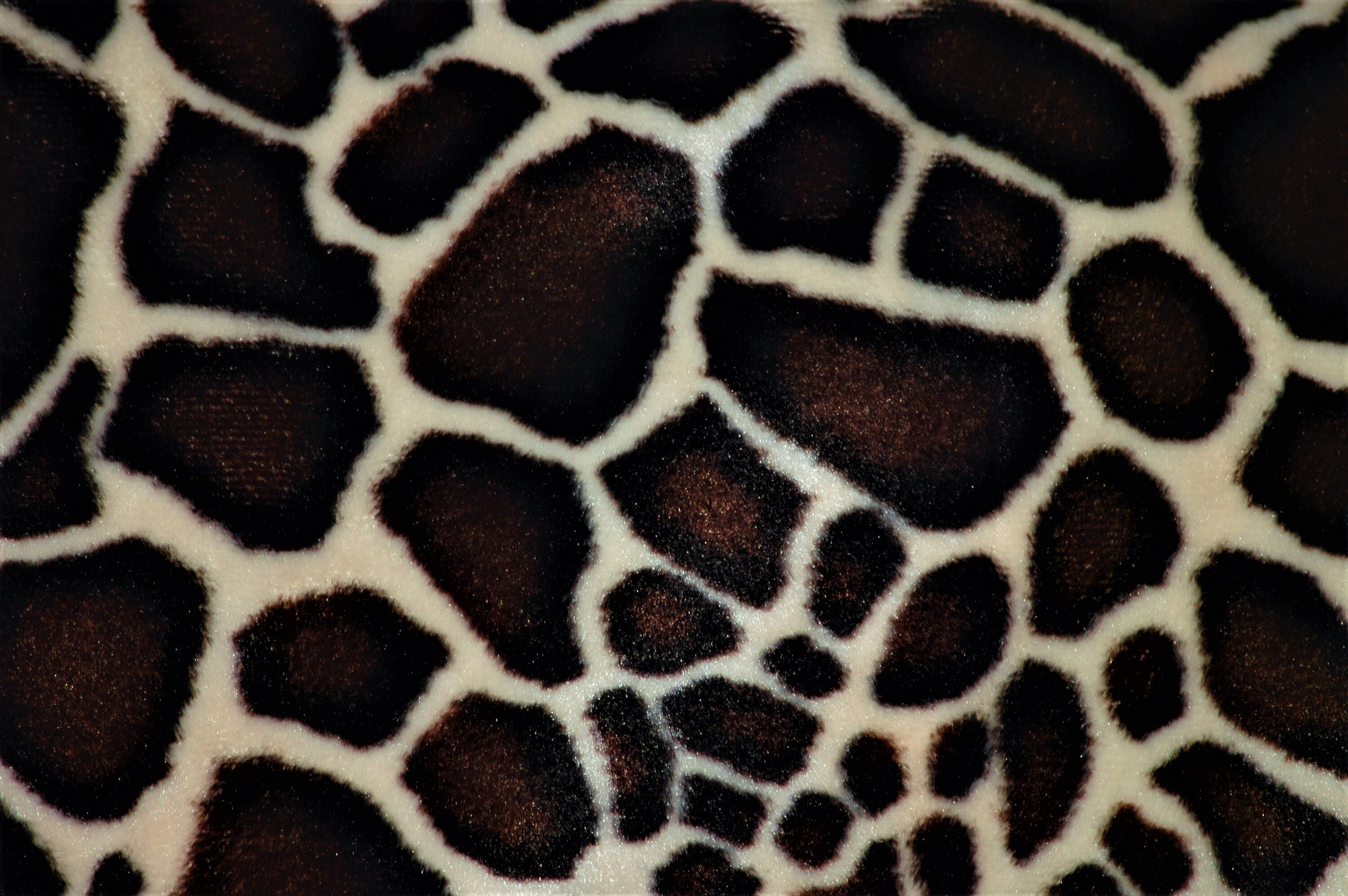 Faux fur giraffe animal print, in a very short pile .