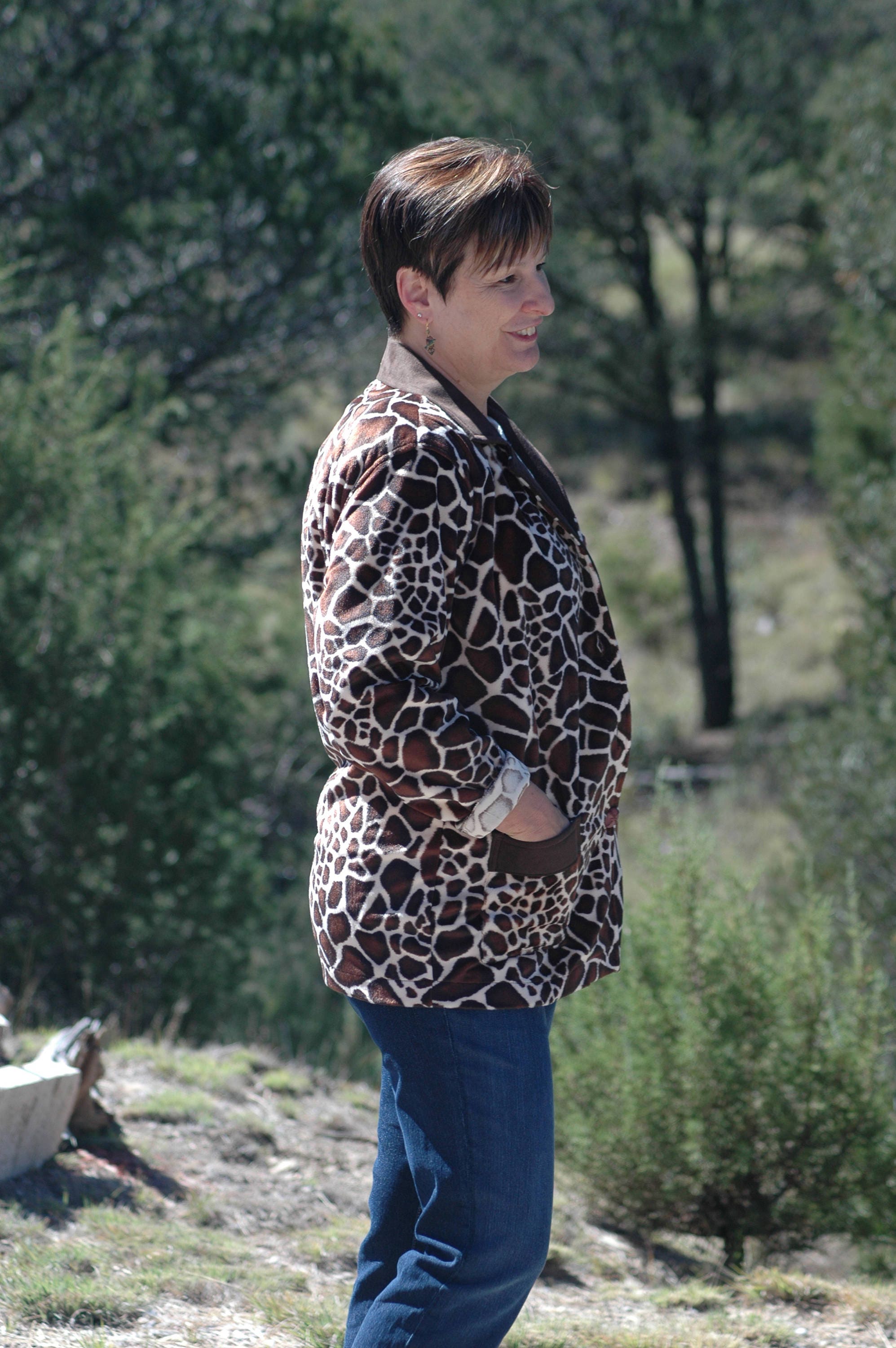 Giraffe print short faux fur everyday jacket