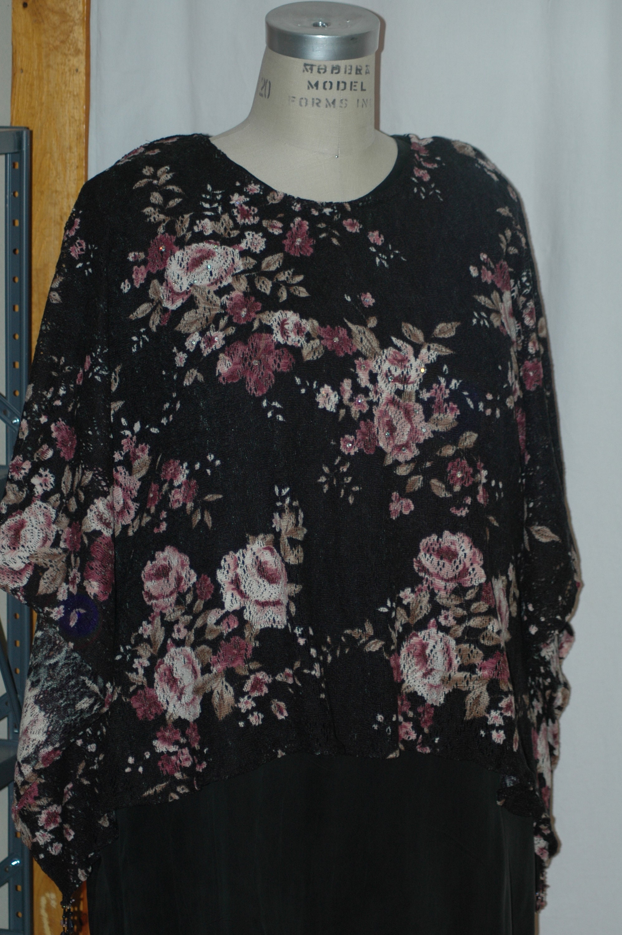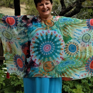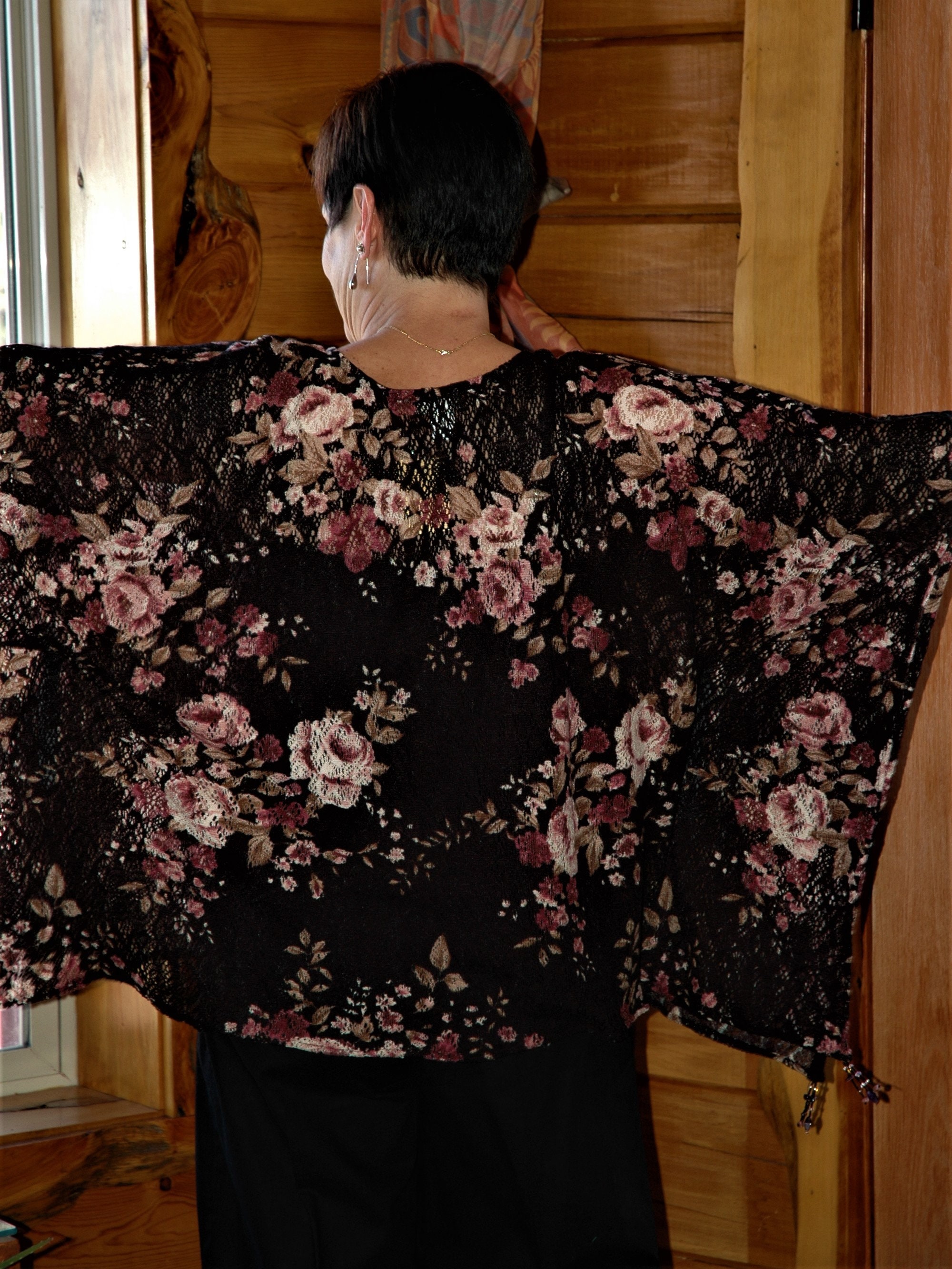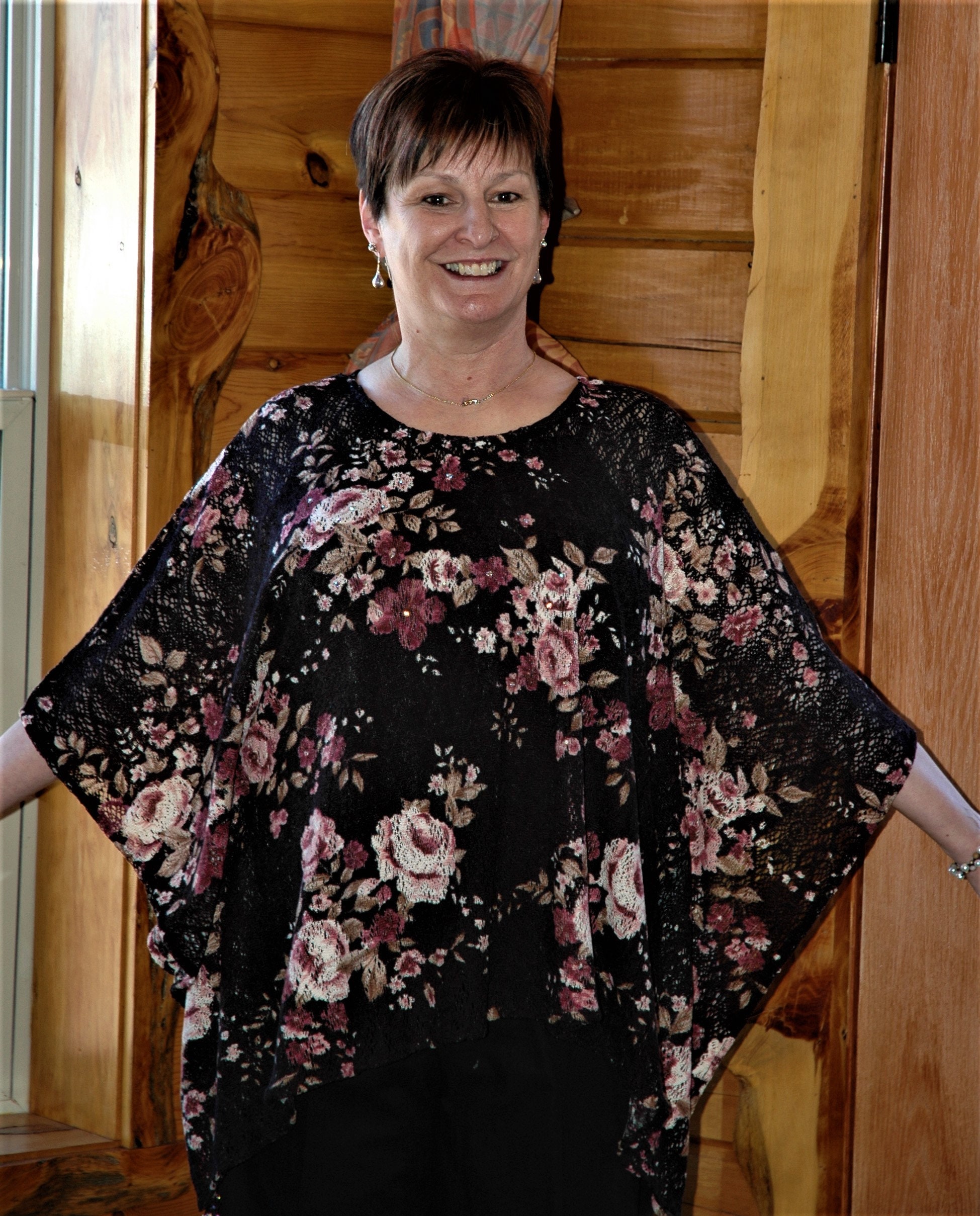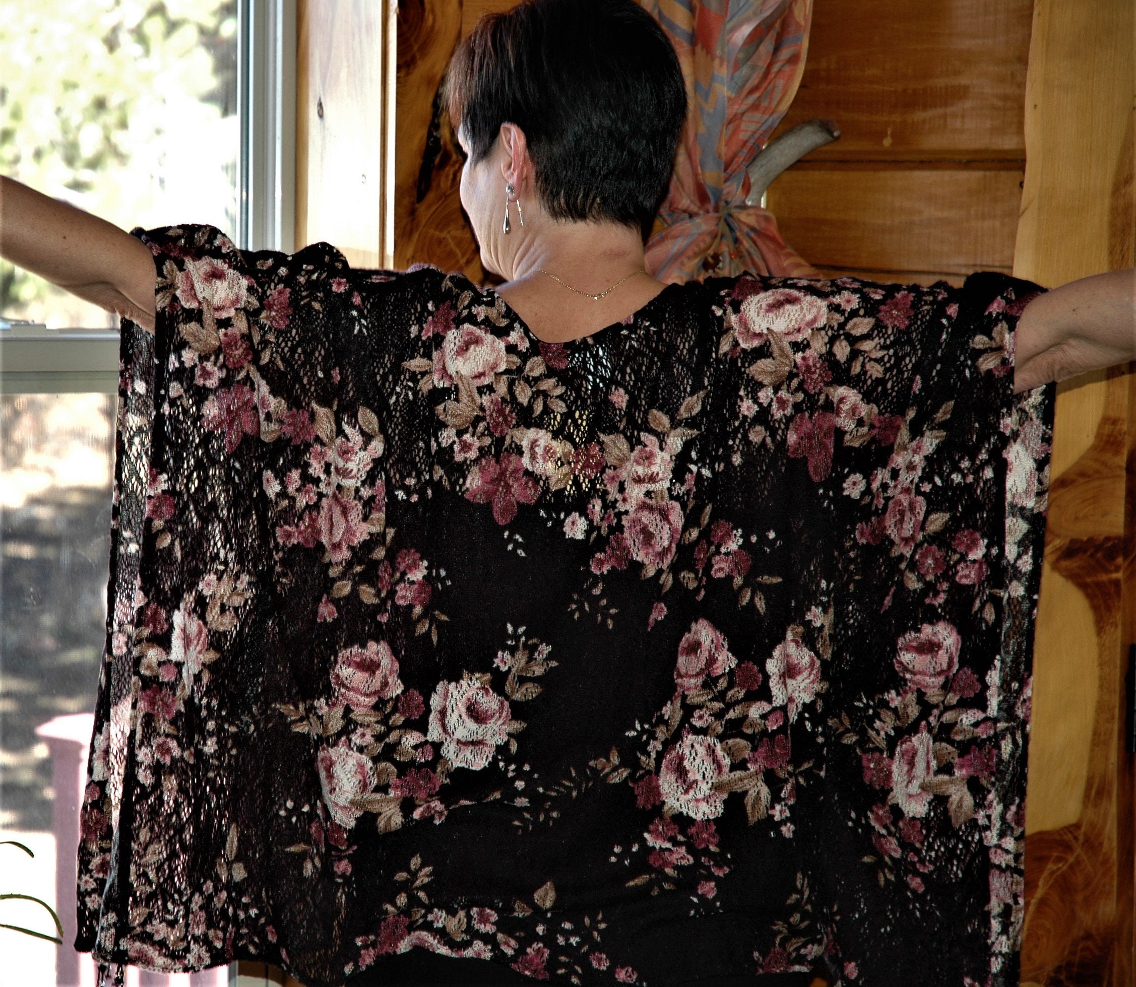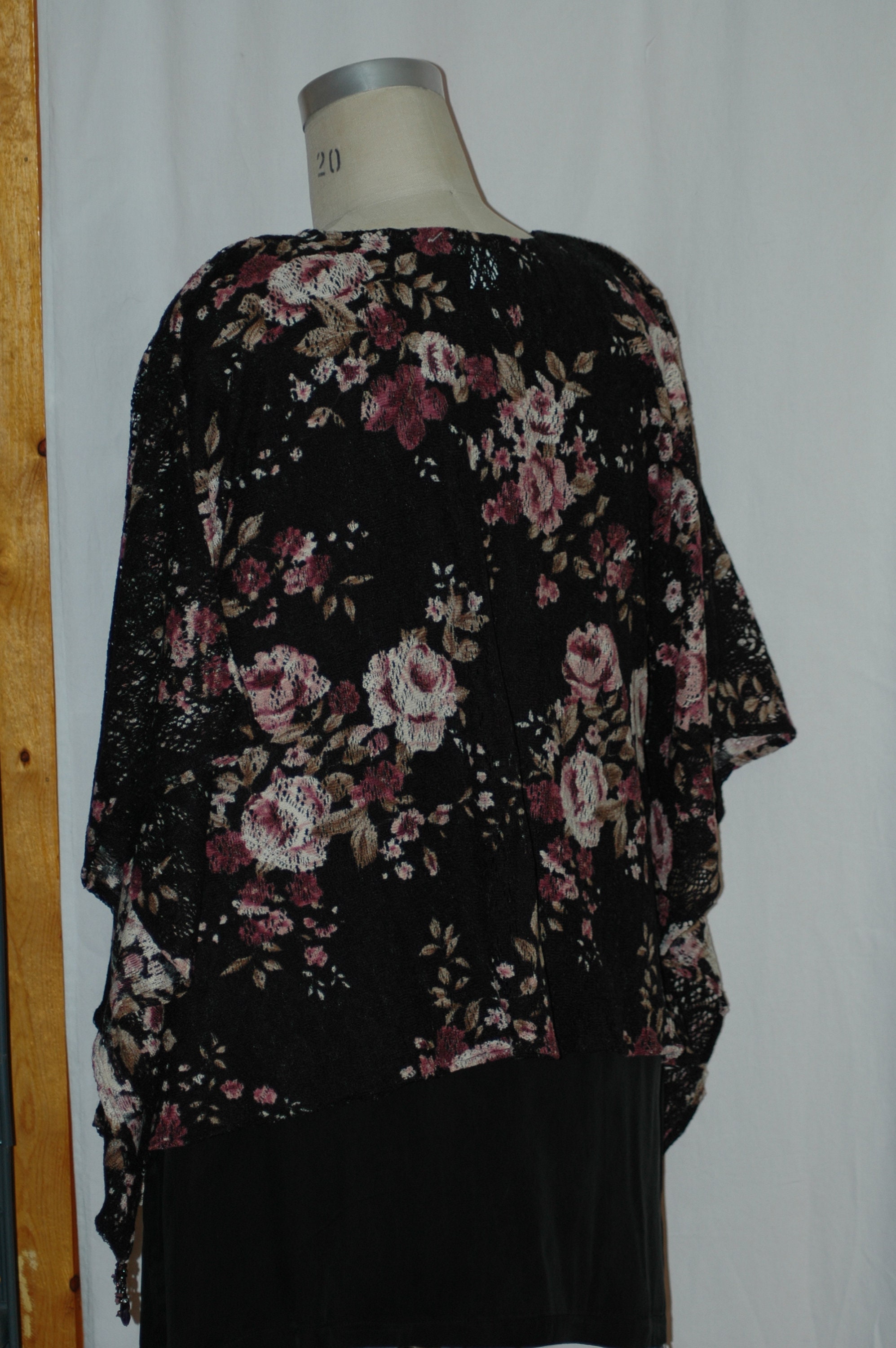 Petite XS to fit X LARGE light weight open weave floral poncho