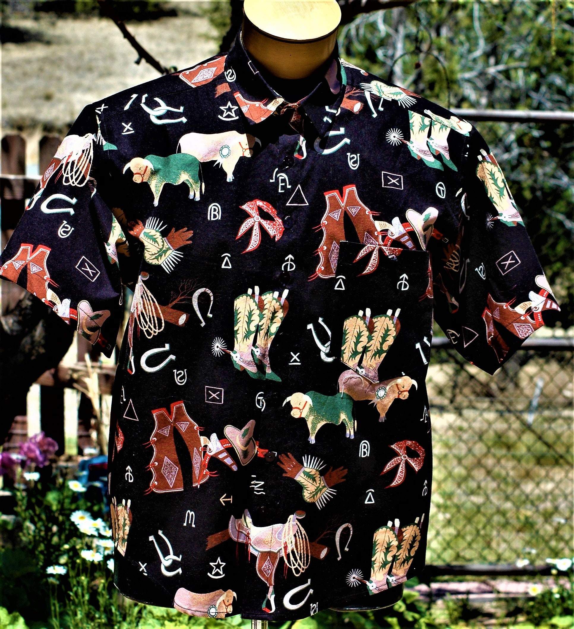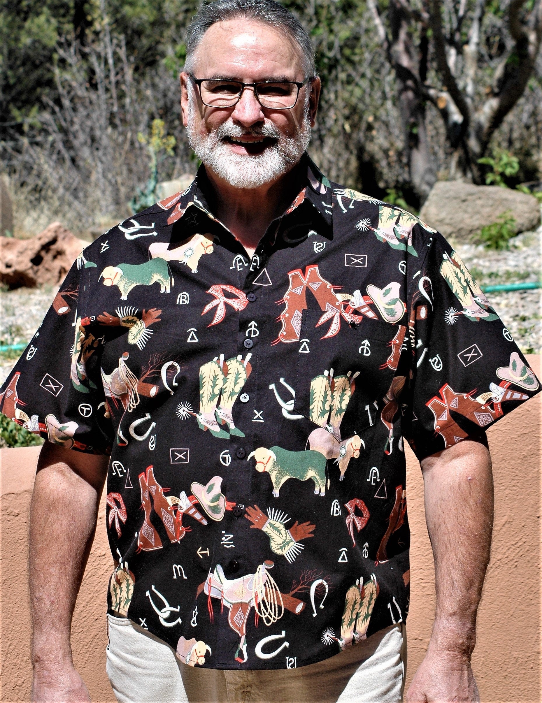 New shorter length for the un-tuck look pre-washed cotton for shrinkage and softness a fun western print, for the rodeo, ranch or to every day wear. Good quality cotton hardly needs pressing. Cotton breathes so you stay cool on those hot and humid days. Easy to travel with no wrinkles.