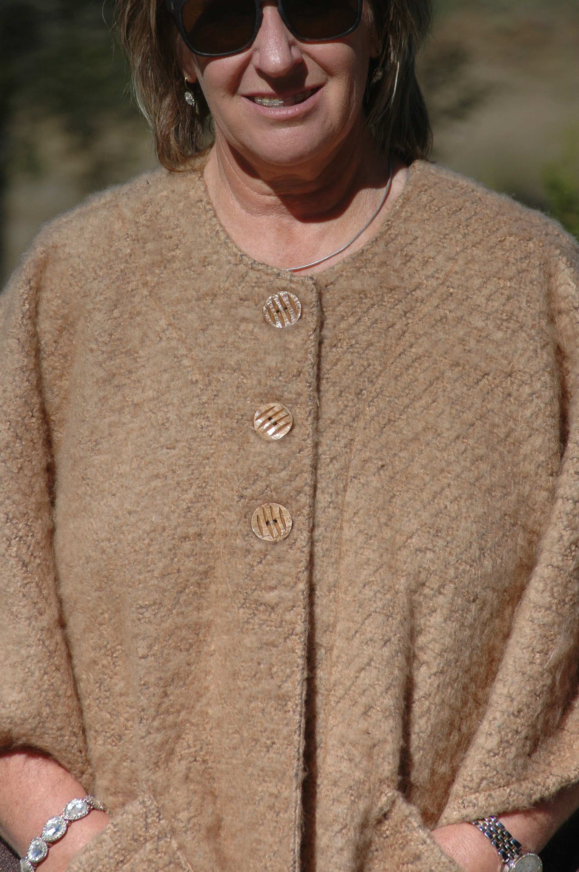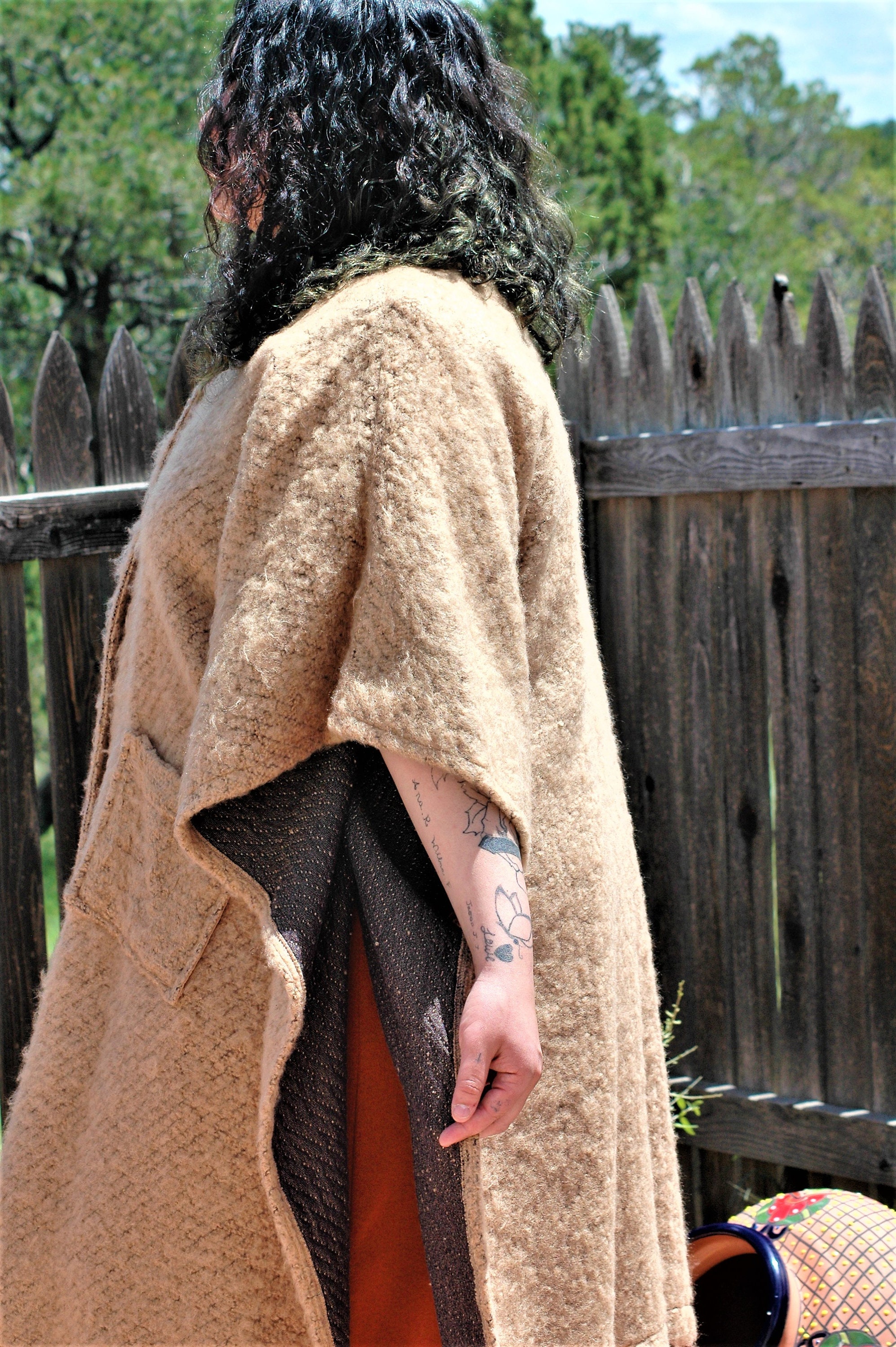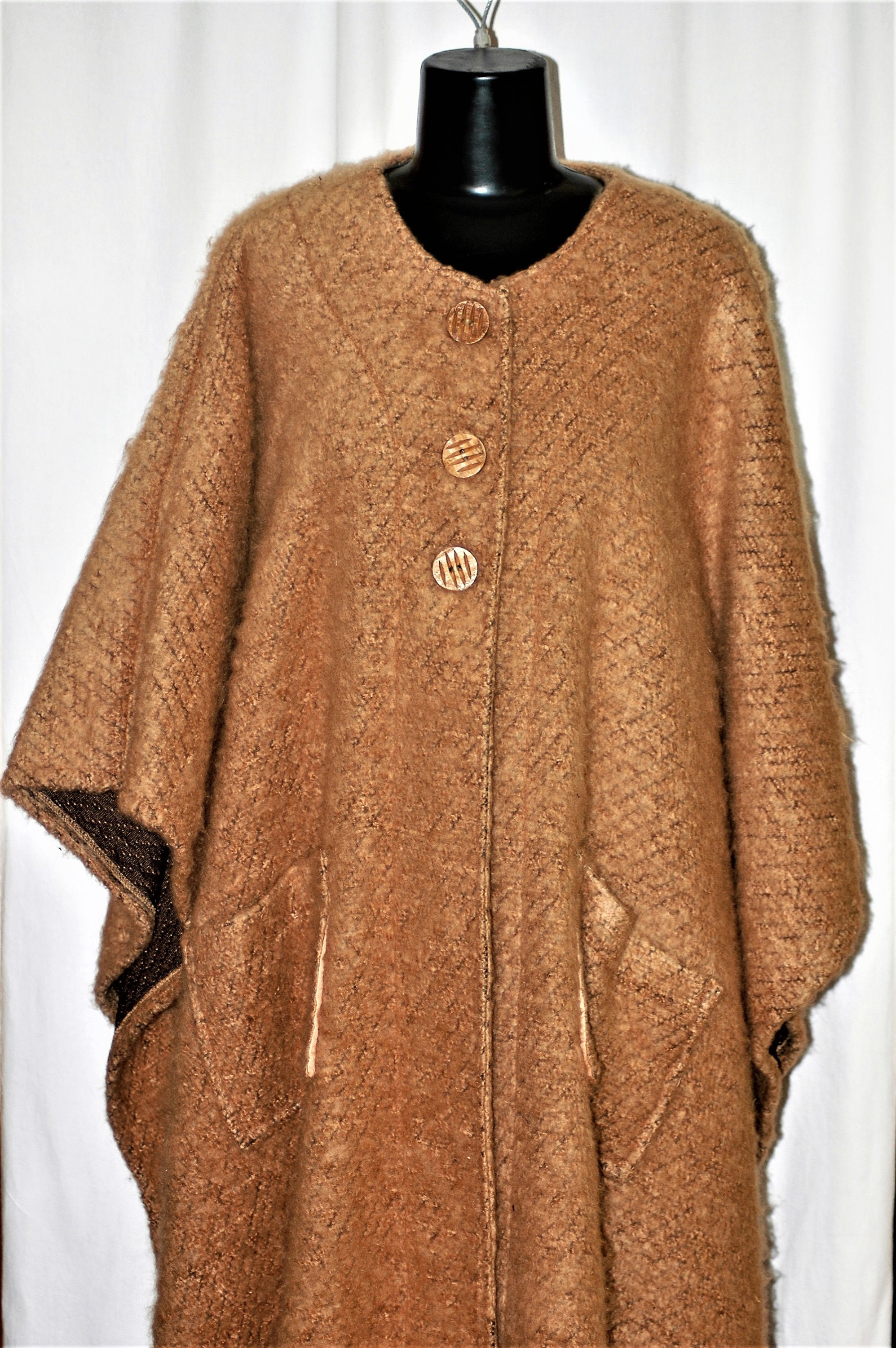 Wool cape out of the softest and fuzziest wool from Italy. Quilted on the inside to add warmth and body to hang like a coat. Has short side seam for your arms so it will act like a coat on. A great accessory to just throw on over work clothes to carry you into evening and or just play time. Very warm and chic, makes a great gift. Travels well also. Makes a wonderful gift for that someone special or treat yourself to something that is just so cozy and soft.